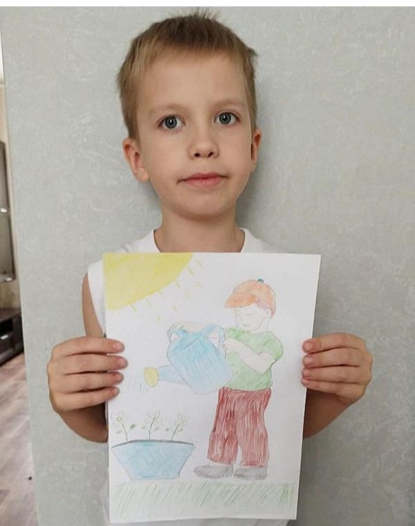 Голуненко Гордей, ученик 1-б класса, выставка рисунков ко Дню Добра