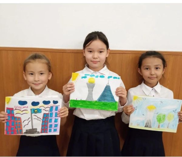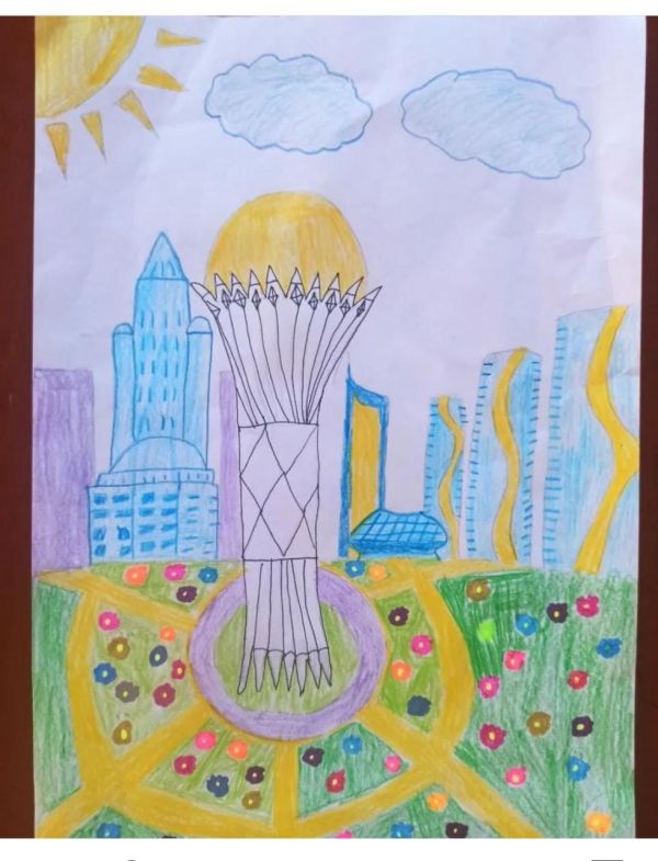 1.Битен Сания, ученица 7А класса, приняла участие в конкурсе рисунков ко Дню Республики Казахстан
