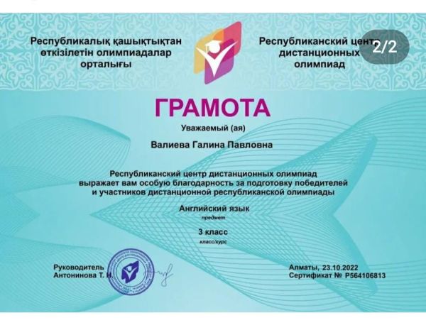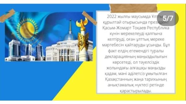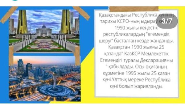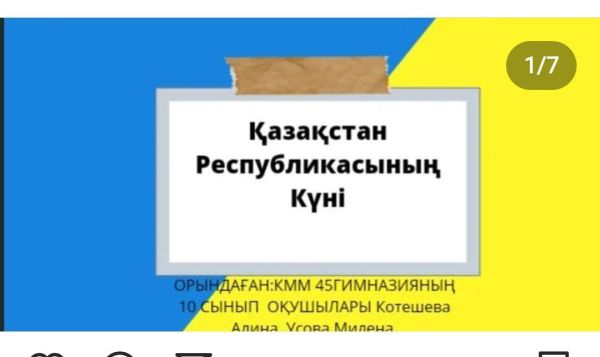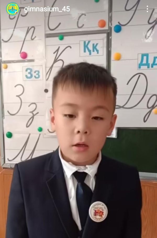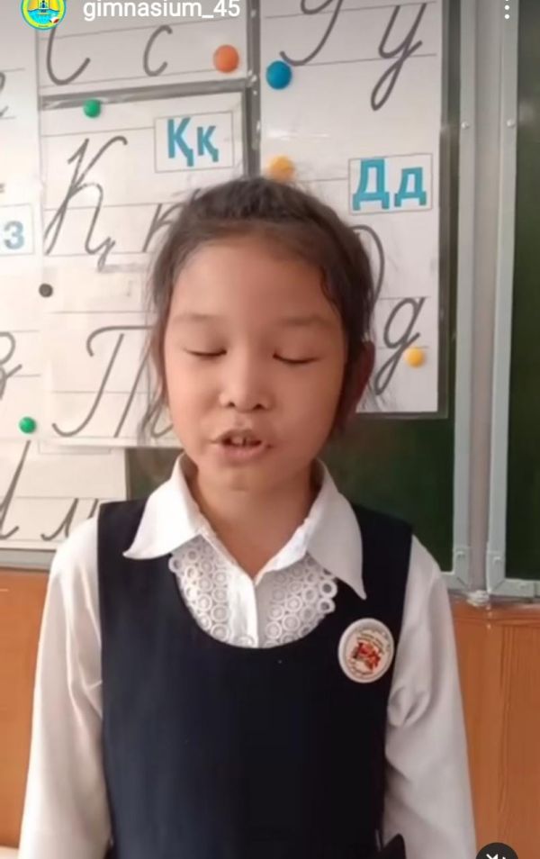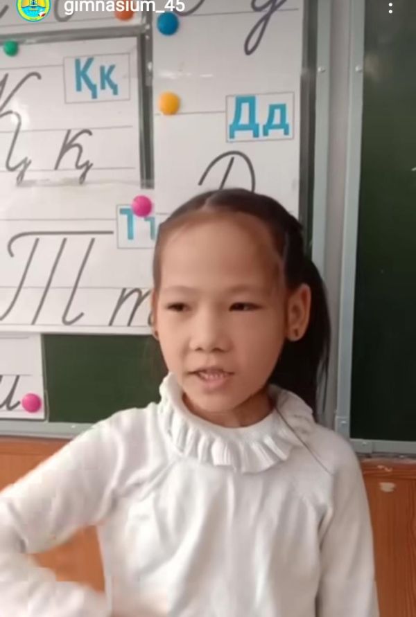 Кайданович Ангелина, ученица 3В класса гимназии #45, приняла участие в челлендже «Республикам менің» ко Дню Республики в рамках проекта «Оқуға құштар мектеп».