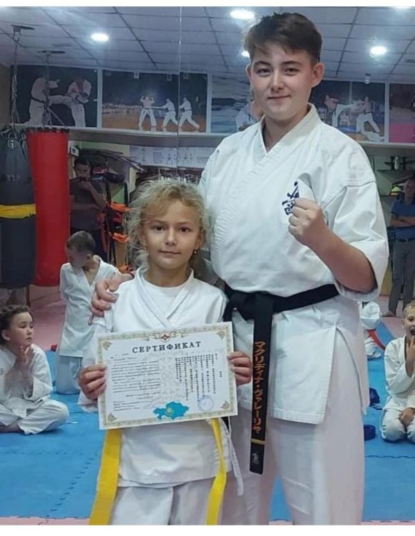 Басыровой Дарине, ученице 2 "Б" класса присвоена степень 6 кю (жёлтый пояс) Кёкушинкай каратэ.