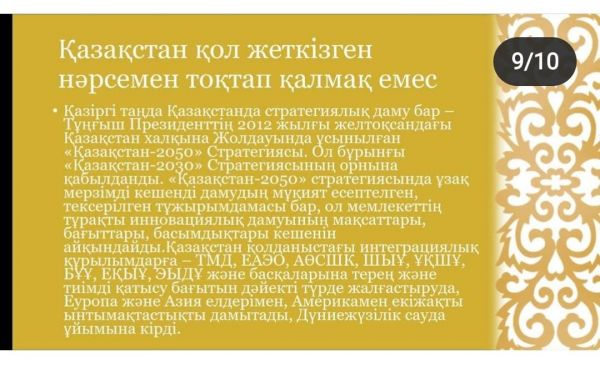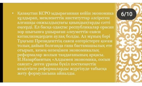Тәуелсіздік күніне арнап 10"б"сынып оқушысы Дулина Ксения өзінің жасаған презентациясымен сыныптастарымен бөлісті.