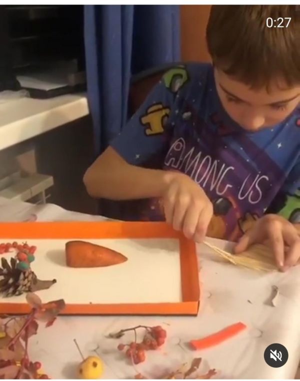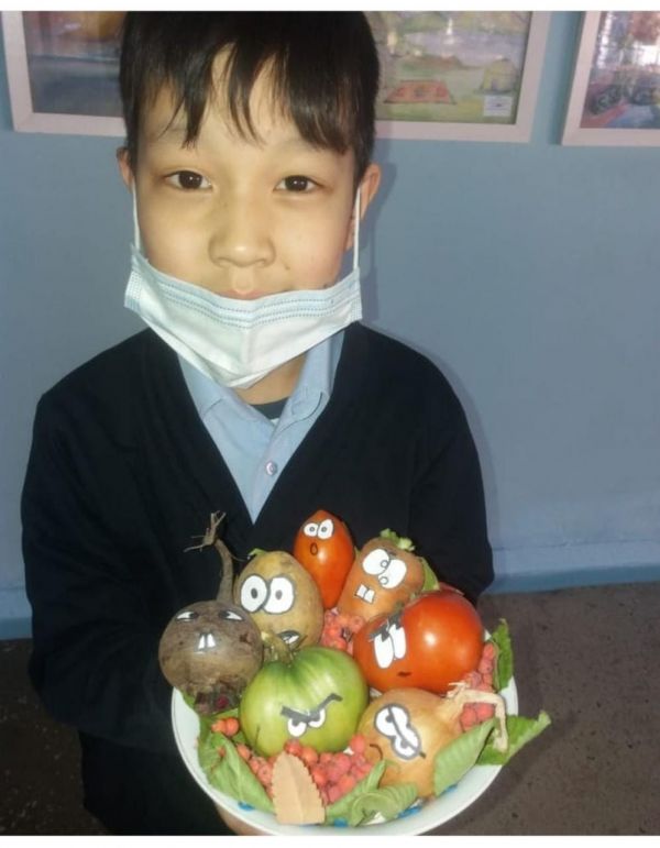 1 А класс Куанов Ильяс "Волшебница осень"Выставка поделок из овощей и фруктов