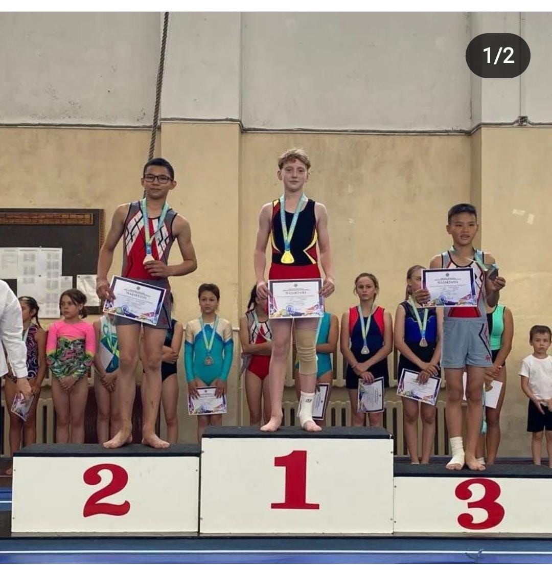 Алматы Чемпионат Казахстана по Батутной гимнастике, Голубков Александр 6б класс в командных соревнованиях занял 1 место.