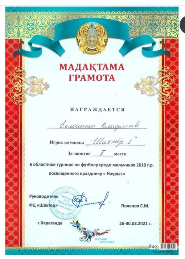 С 26 по 30 марта 2021 года в футбольном манеже города Караганда прошел областной турнир среди юношей 2010 года рождения посвященный празднику «Наурыз».