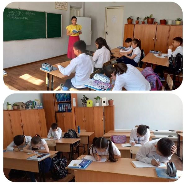 Оқу сауаттылық апталығында 4"Ә" сынып оқушылары "Кітаптар әлемінде" тақырыбында диктант жазды.