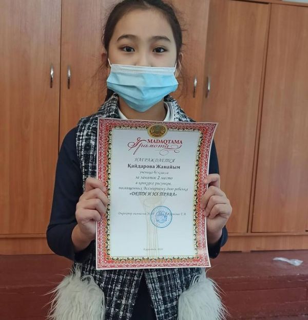 2.Жанат Айша, 1б класс. Поддерживает челлендж "Читаем всей семьёй"