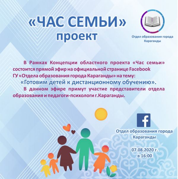 04 августа 2020 года в 16.45 часов состоится мероприятие «Час семьи». Приглашаем педагогов организаций образования, классных руководителей, учащихс…