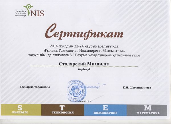 С 21 по 23 марта ученик нашей гимназии Столярский Михаил принял участие в Республиканских Наурызовских чтениях