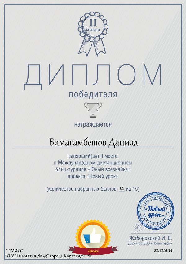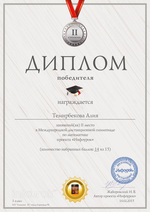 Итоги Республиканской олимпиады школьников по 15 общеобразовательным предметам соответствии с Приказом Министра образования и науки Республики Казахстан  № 421 от 14 октября 2014 года «…