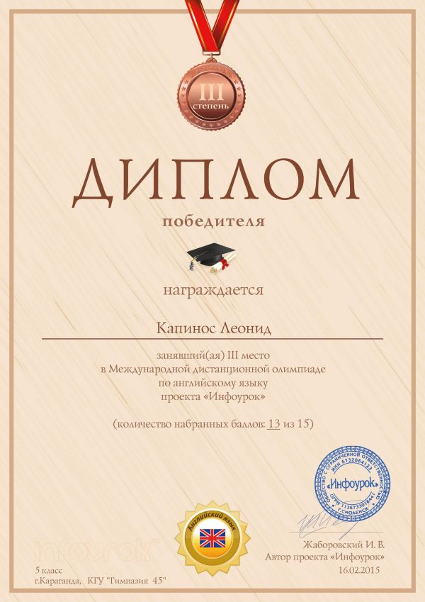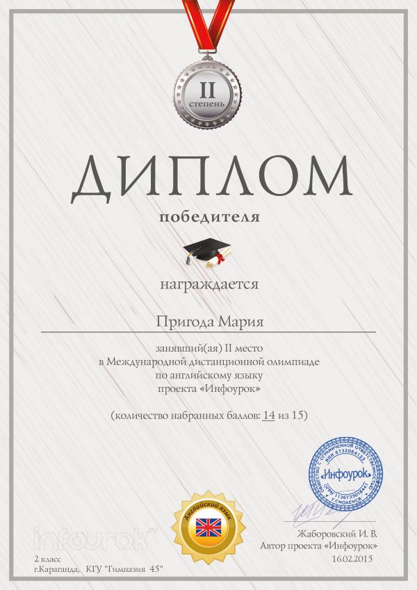 Результаты Международной дистанционной олимпиады по Английскому языку учащихся 2-11 кл