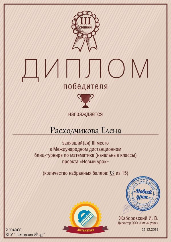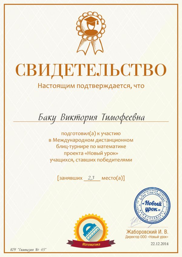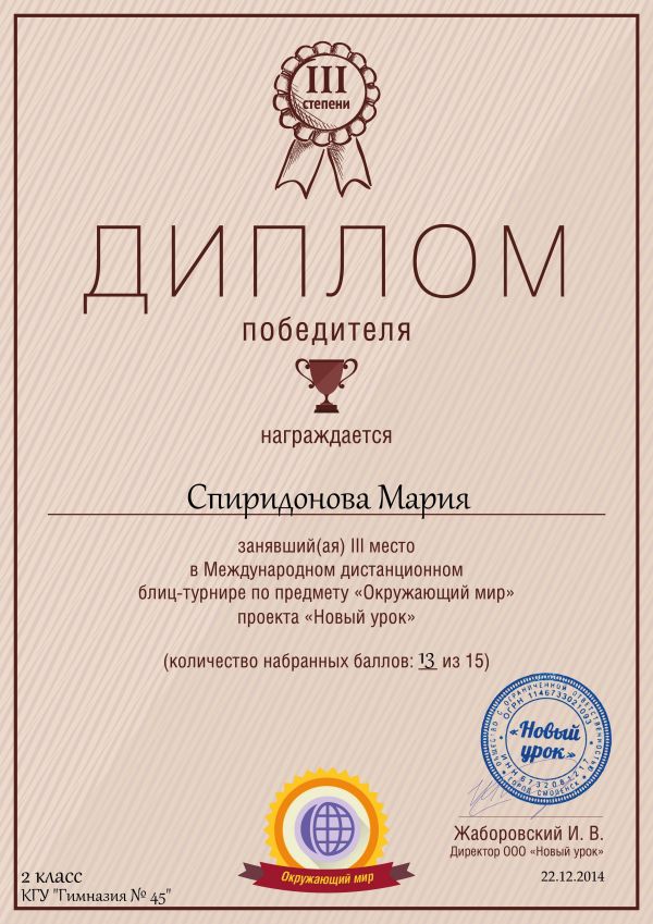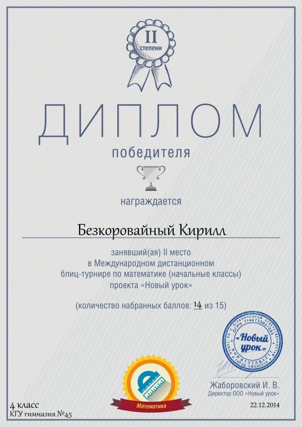 Победители и призёры Международной дистанционной олимпиады проекта «Новый урок»