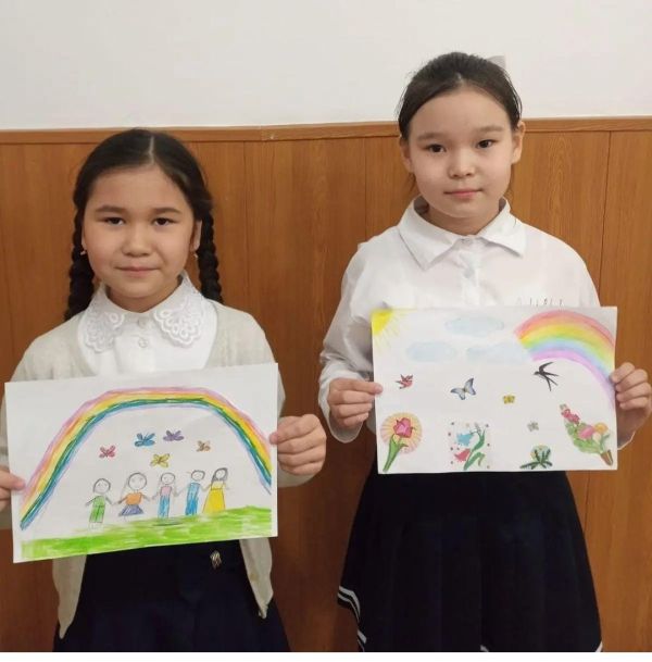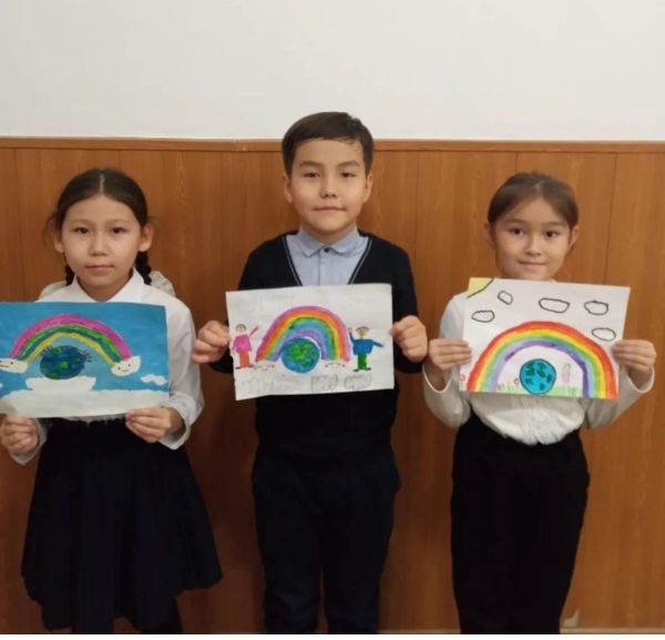 Алаңсыз бақытты балалық шақ" атты сурет байқауына қатысушы 3"Ә" сынып оқушылары Ардаққызы Ділнәз, Жайдаров Алижан, Мұсайынова Кәусар