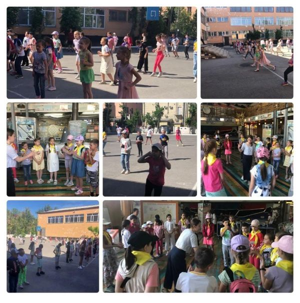 День творчества в пришкольном лагере "Республика Детства". На линейке поиграли в игру "Мои увлечения", подвели итоги конкурса поделок из мусора. Каждый отряд получил творческое з…