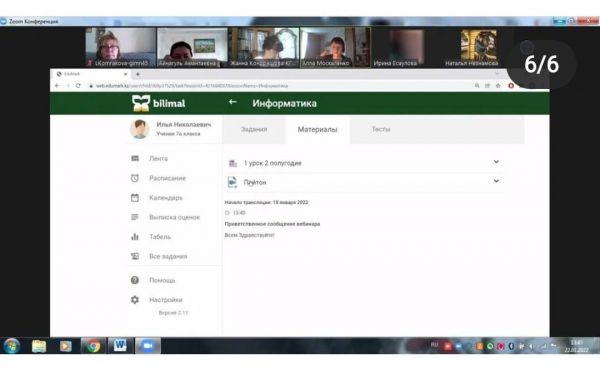 22.01.22 был проведен обучающий семинар для учителей гимназии по теме: «Безопасная трансляция on-line уроков через платформу Bilimal»