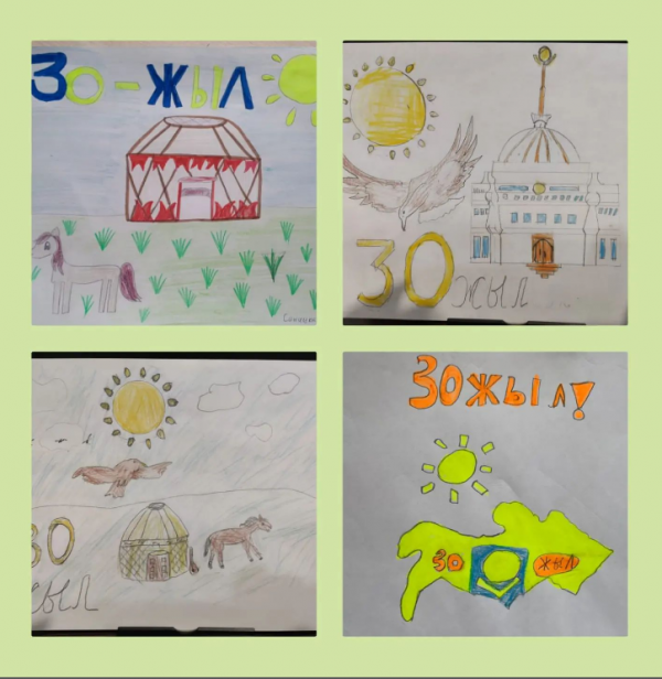 Мектебіміздің 4"А" сынып оқушысы Алсейтов Диас "Қазақстанның мемлекеттік рәміздеріне 30 жыл" тақырыбына сурет салып келді.