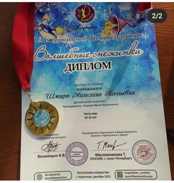 Шмидт Михелина приняла участие в международном фестивале конкурсе и заняла 1 место в номинации театр мод