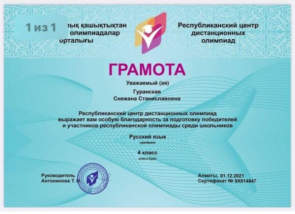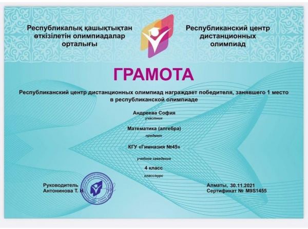 Рахимбаев Али, ученик 1 "В" класса. Поздравляем!