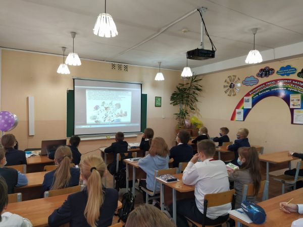 В рамках недели эстетической грамотности учащиеся 5-11 классов на уроке английского языка посмотрели открывок о культурных ценностях Казахстана.