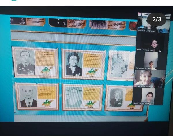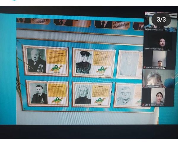 В рамках празднования Дня Победы в ВОВ руководителем кружка "Атамекен" Болатбековой Р.К. была проведена онлайн-экскурсия в Музей Боевой Славы гимназии для учащихся 7а класса.