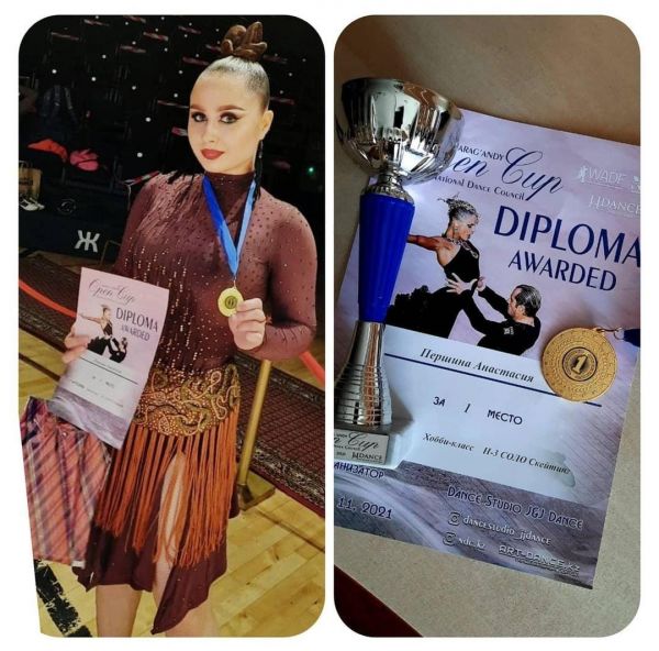 11.04.2021 в центре бокса им. Серика Сапиева проходил турнир по спортивно- бальным танцам, в котором ученица 10"Б" класса, КГУ "Гимназия 45" взяла 1 место. Поздравляем!!!