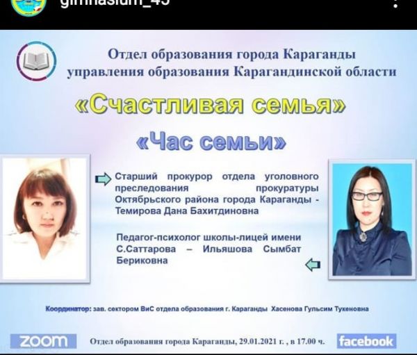 29 января В гимназии прошла онлайн-конференция в рамках проекта встреча с интересными людьми "Өнегелі өмір". Гость конференции - полковник Жантасов Амангельды Темиржанович,