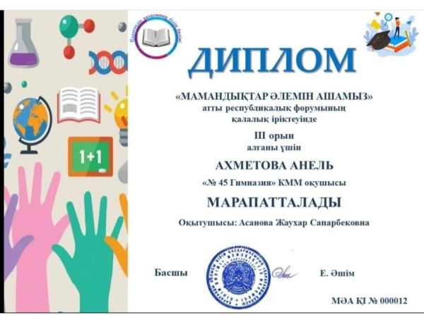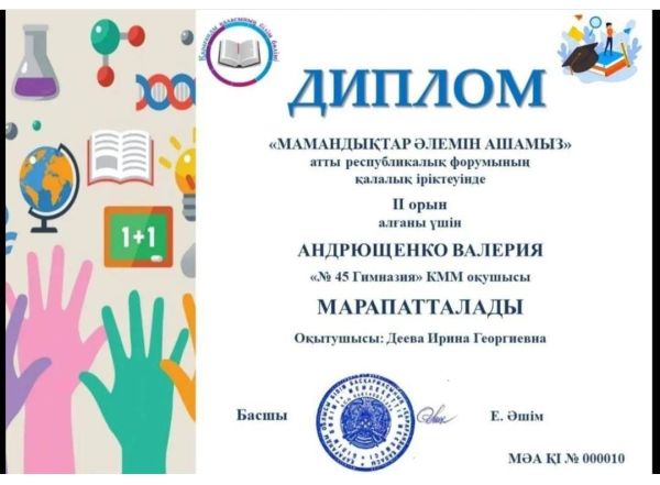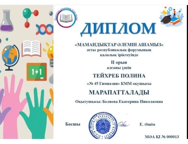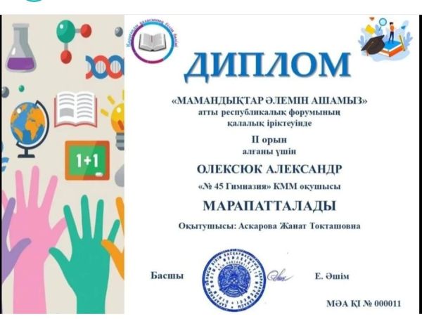 2"ә"сынып оқушысы Оралсын Ақниет "Менің ата -анамның мамандығы"тақырыбындағы фото коллаж жасау байқауына қатысты.