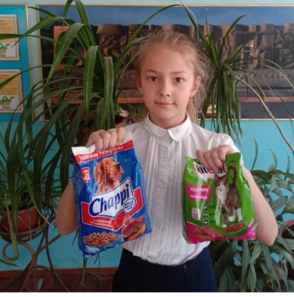 Басырова Дарина, ученица 2 Б класса, приняла участие в акции ко Дню помощи бродячим животным.
