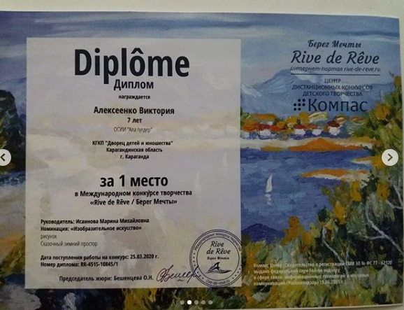Поздравляем!Алексеенко Виктория, 1 а класс.