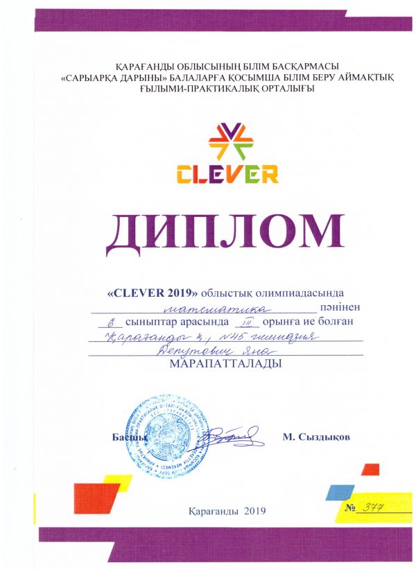 В IV областной олимпиаде  «CLEVER - 2019» среди учащихся 4-6 классов приняло участие 14 человек. Призовые места: Депутович Яна 6 класс – 3 место (руководитель Москаленко А.Н…