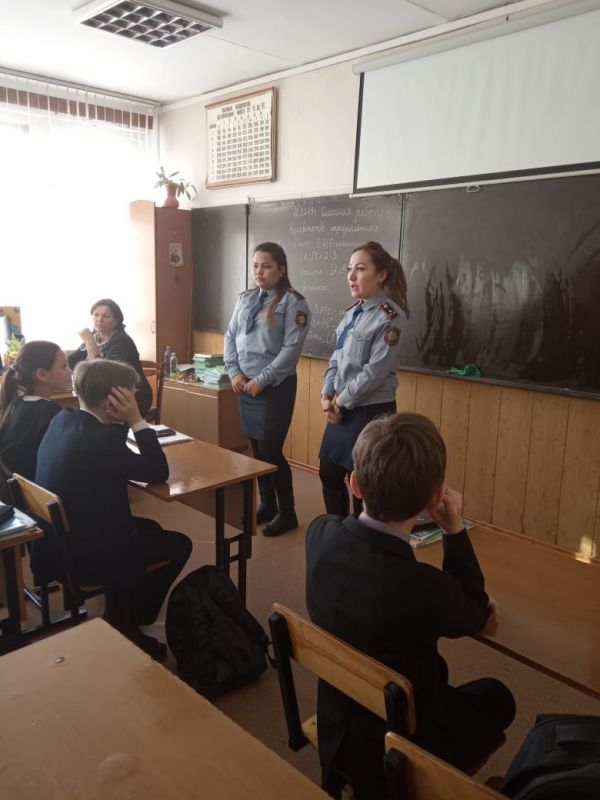 Старший лейтенант полиции Барамбай А.С. и Туйменбаева Н.С. провели беседу в 7а и 7б классах (56 человек) на тему: «Уголовная и административная ответственность несовершеннолетних», &laqu…