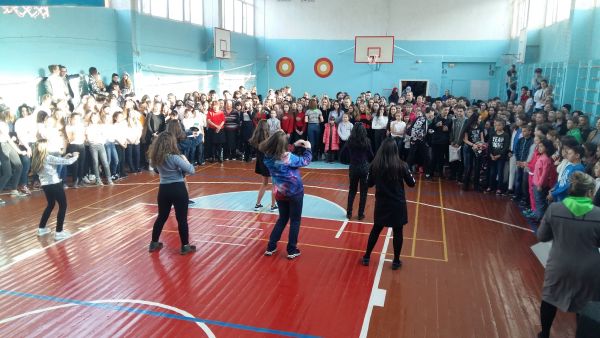 В экологическом флешмобе приняли участие учащиеся 5-11 классов, родители и учителя гимназии (более 400 человек).