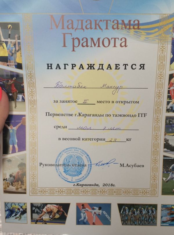 Ученик 1А класса КГУ «Гимназия №45» Балтабек Мансур занял 2 место в открытом первенстве г. Караганды по таэквондо ITF в весовой категории 28 кг. Это не первая победа Мансура.…