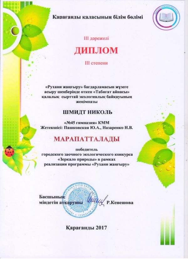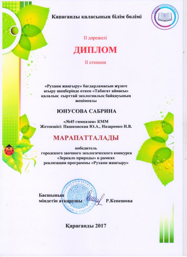 Поздравляем победителей и участников городского конкурса " Зеркало природы"