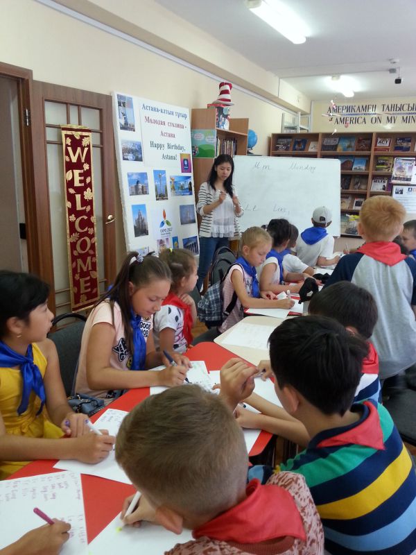 Сегодняв профильном лагере прошел традиционный флешмоб, после которого было организовано мероприятие, посвященное Дню Столицы и Первого Президента: работники библиотеки и руководители профилей подго…