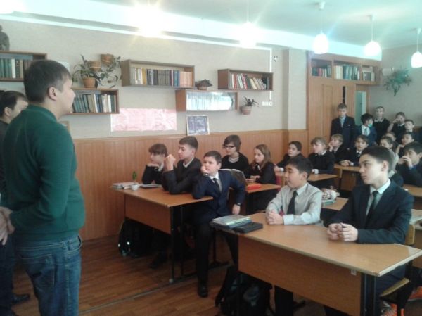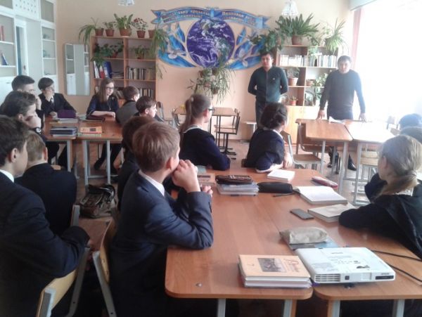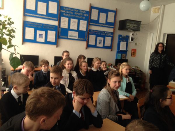 24 ноября совместно с библиотекой Гимназии №45 в 8"В" классе был проведен классный час на тему "Глобальные инициативы Казахстана в мире".Библиотекарем Жигулиной И.Д. была п…