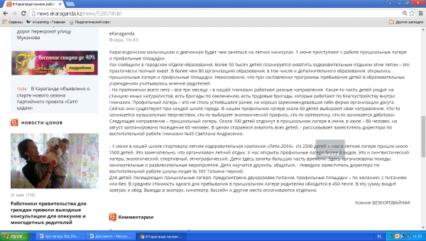 Бүгін, 7 маусым, балалар мектеп сауықтыру лагері бассейнге барды. Шынықтыру және сауықтыру – маңызды құрамдас бөлігі жазғы демалыс. Сол балалар бармаған бассейн, экскурсиялар Экологиялық мұраж…
