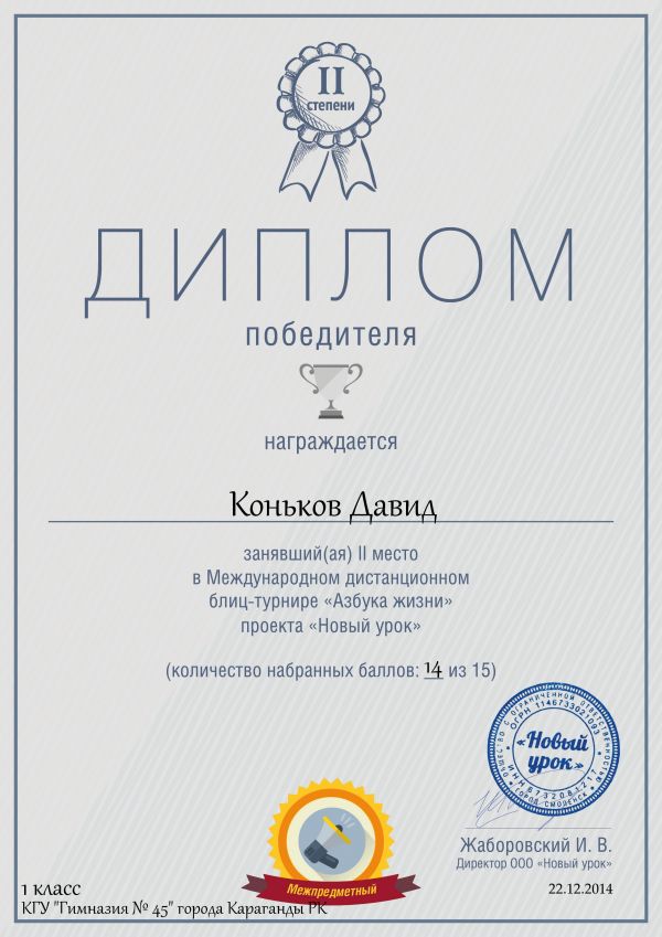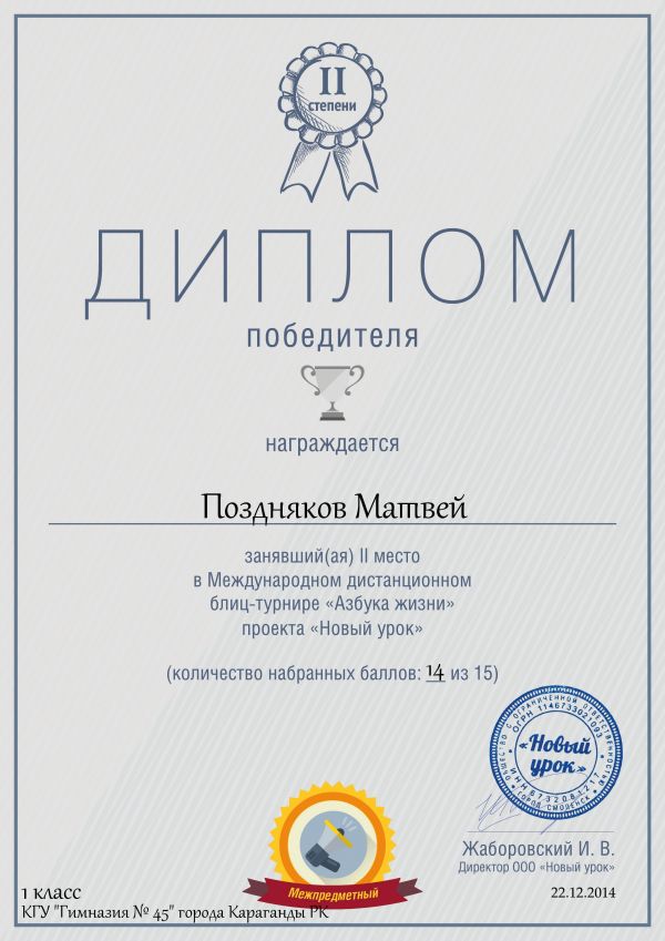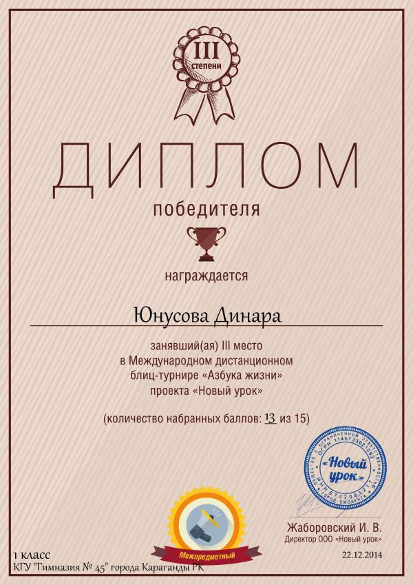 Результаты Международного дистанционного близ-турнира "Азбука жизни" в проекте "НОВЫЙ УРОК"