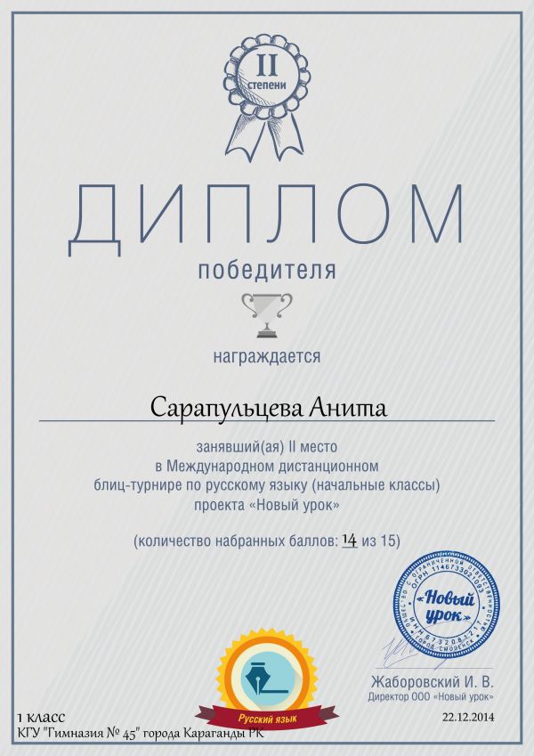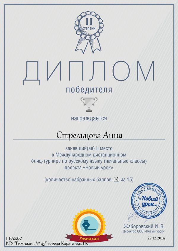 ПОЗДРАВЛЯЕМ ПОБЕДИТЕЛЕЙ МЕЖДУНАРОДНОЙ ДИСТАНЦИОННОЙ ОЛИМПИАДЫ ПО РУССКОМУ ЯЗЫКУ ПРОЕКТА "НОВЫЙ УРОК"