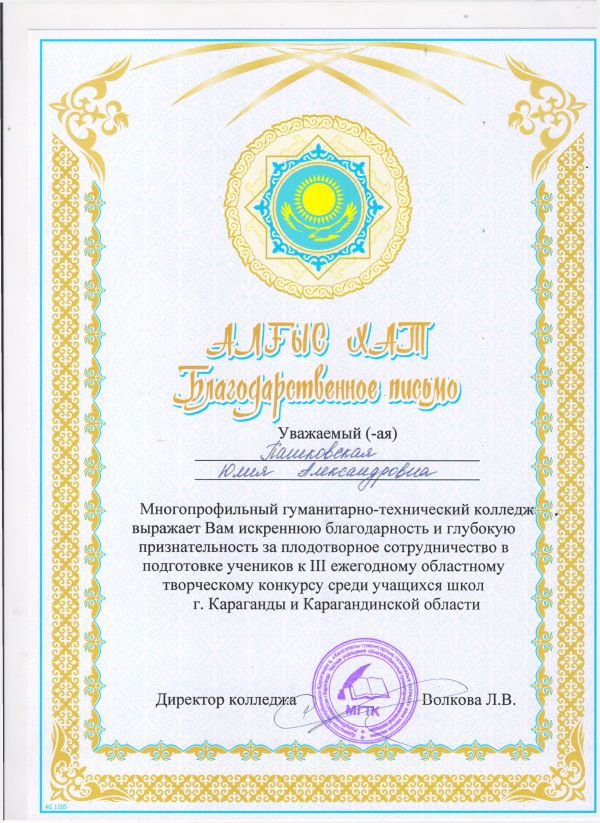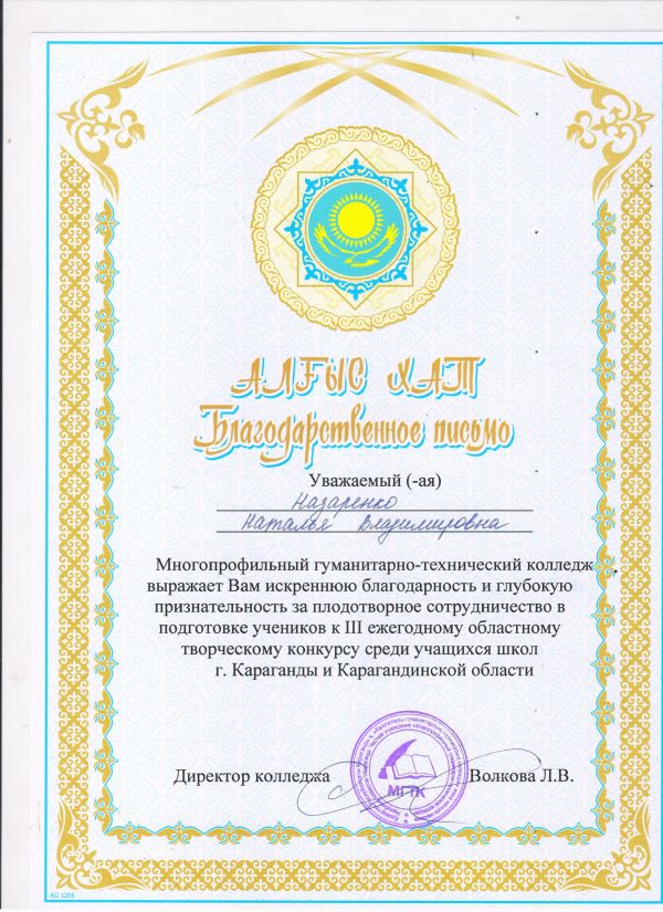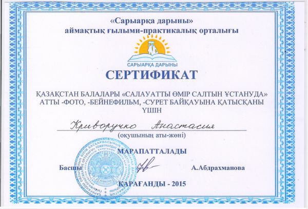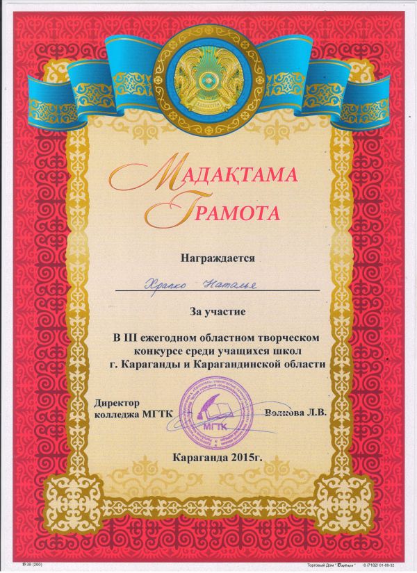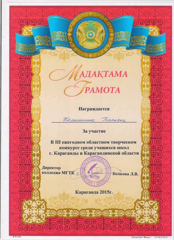 Результаты 3 ежегодного областного творческого конкурса среди учащихся школ г. Караганды и Карагандинской обл.