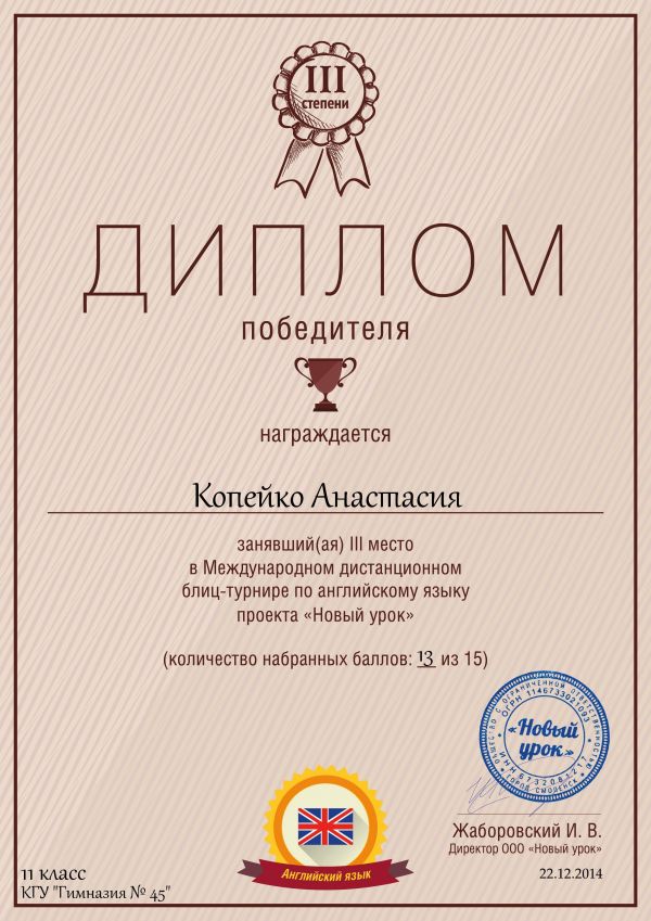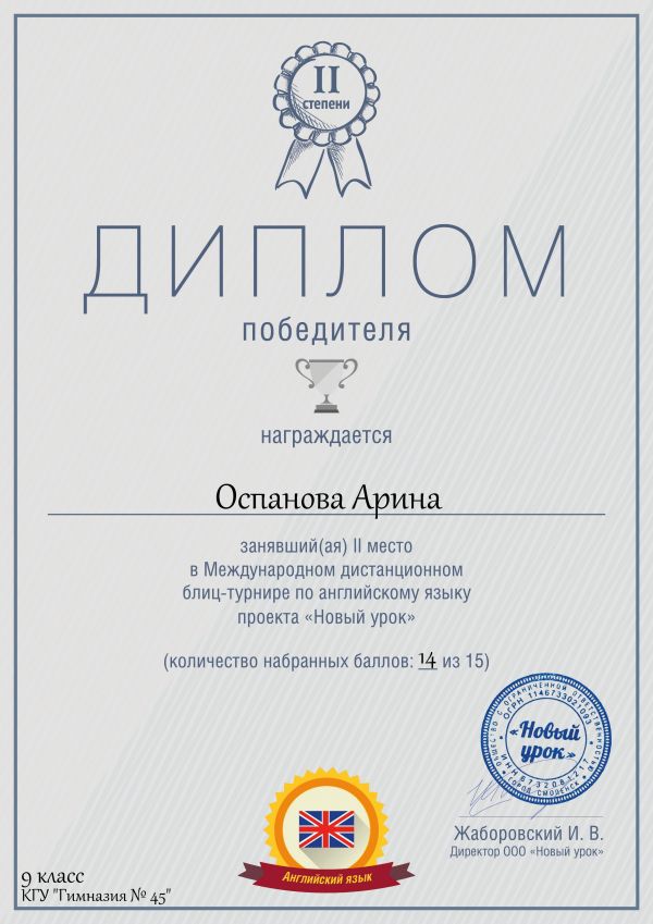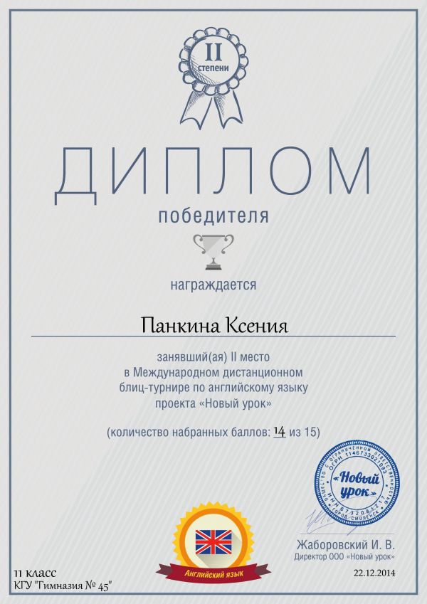 Результаты Международной дистанционной олимпиады по английскому языку среди 5-11 кл