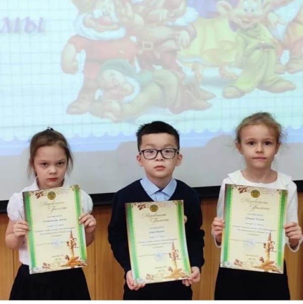 Учеников 1 а класса Светличную Арину,Алиева Карима,Грицай Элину- с занятым 3 местом в конкурсе рисунков"Сказки А.С.Пушкина"