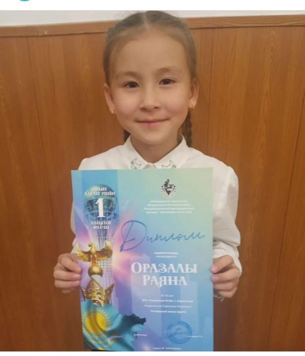 3"Ә" сынып оқушысы Оразалы Раяна Республикалық " Отан ана" байқауынан I орын алғаны үшін марапатталды