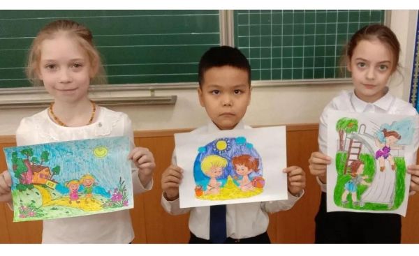 Ученики 2 Б класса приняли участие в выставке рисунков "Планета беззаботного детства".