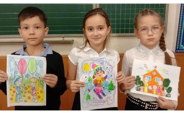 ,Абдулганиева Амина, 3 б класс., Ахмедьянова Амелия, 3 б класс. Конкурс рисунков "Планета беззаботного детства"