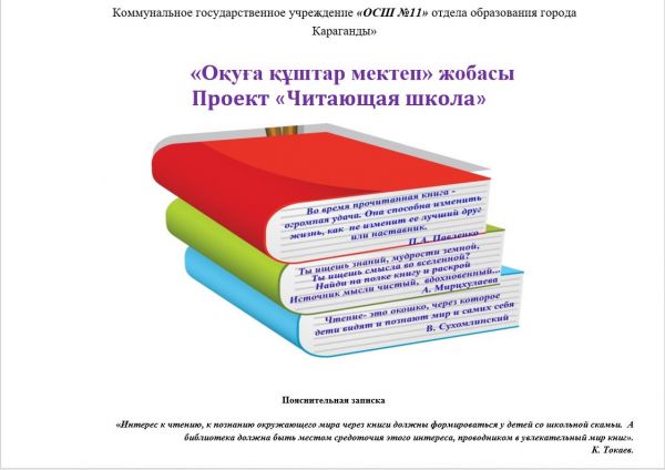 В нашей школе стартовал проект «Читающая ШКОЛА», рекомендованный МОН Казахстана.
