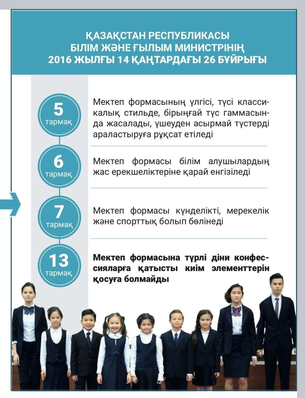 Орта білім беру ұйымдарының міндетті мектеп формасына қойылатын талаптар Қазақстан Республикасы білім және ғылым Министрінің 2016 жылғ…