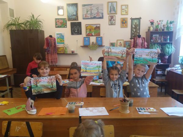 Дети увлечены искусством.