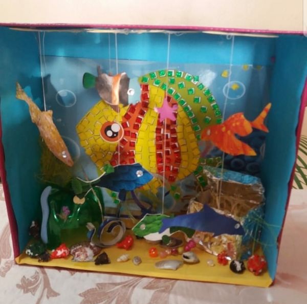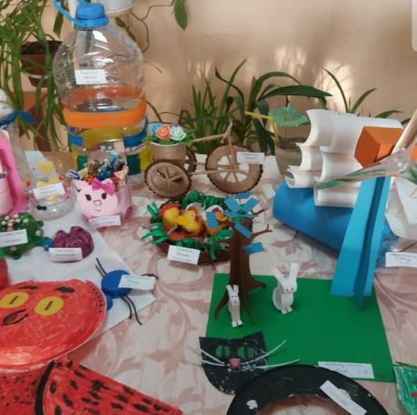 Вот такие модели приняли участиев дефиле "Мода из отходов". Очень необычные экпонаты представлены учащимися 1-4 классов на выставке поделок.