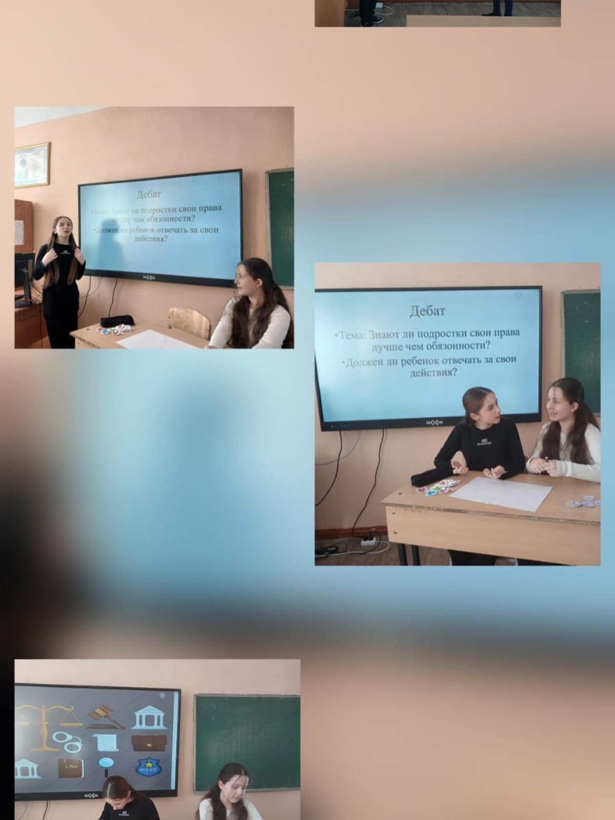 6 классом было проведено дебатные игры на тему: «Знают ли подростки свои права лучше, чем свои обязанности?»