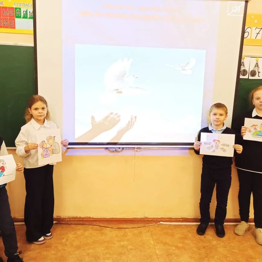 В рамках проекта «Зорлық - зомбылықсыз 16 күн” учащиеся 4А класса представили свои работы на тему "Мир без насилия".
